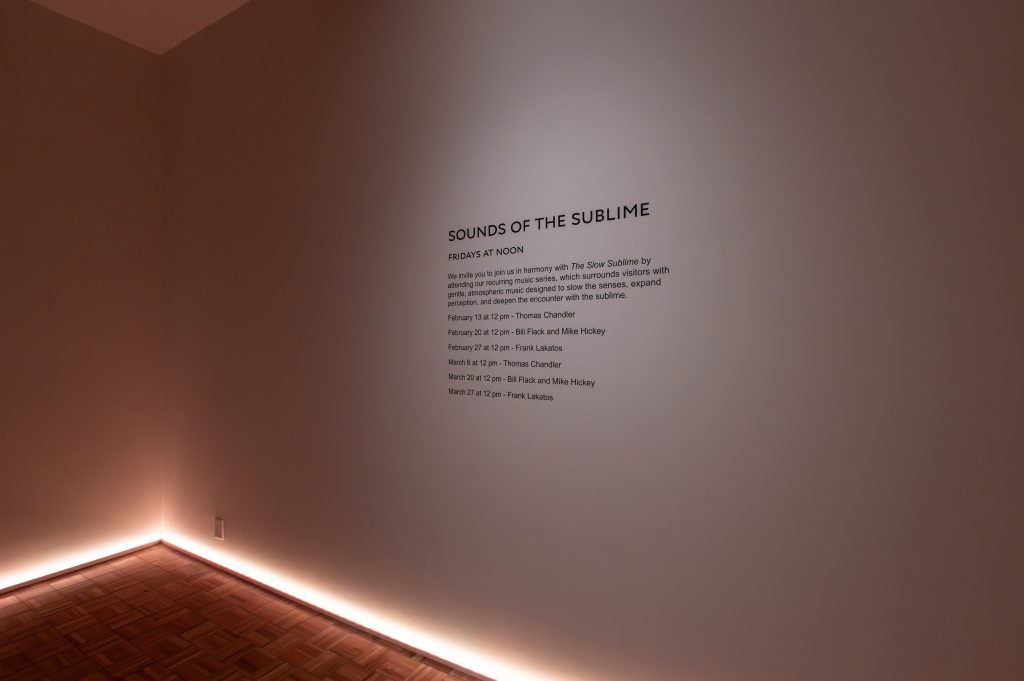 How do we explore this new realm in search of the sublime? We enter slow time by practicing slow looking (see the far wall for some tips). This exhibition encourages slow looking by focusing on one new treasure each week from the museum vault, some not shown in decades, that hints at a different aspect of the sublime.