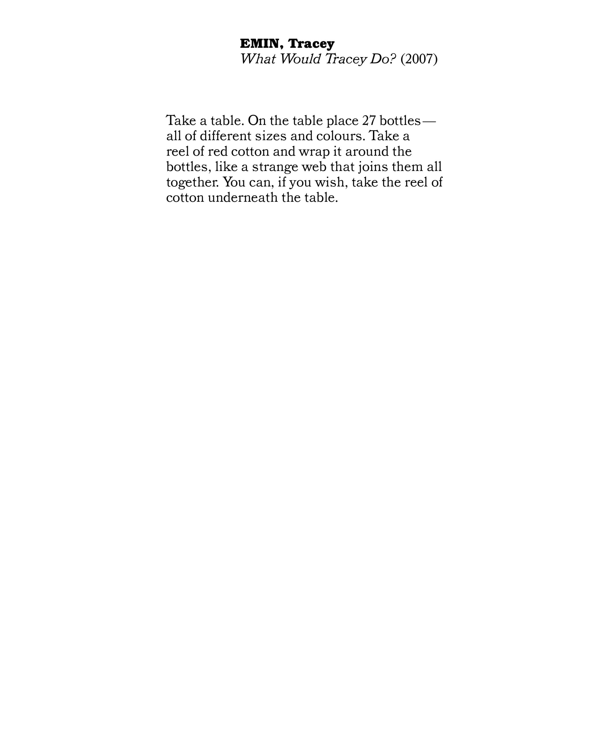 These are the artists’ instructions; every week two of them will be enacted by local community members and appear on the wall of our gallery alongside the instructions – creating an unfolding exhibition-in-progress. Everyone is encouraged to participate online; simply render your own interpretation and post it on Instagram with the hashtag #doithome”