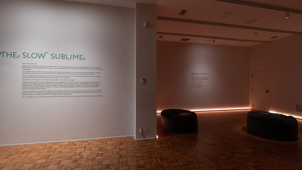How do we explore this new realm in search of the sublime? We enter slow time by practicing slow looking (see the far wall for some tips). This exhibition encourages slow looking by focusing on one new treasure each week from the museum vault, some not shown in decades, that hints at a different aspect of the sublime.